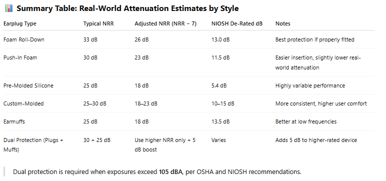 Avoid Overprotection: Excessive attenuation can hinder communication and awareness. Aim for a protected exposure level between 75–85 dBA.